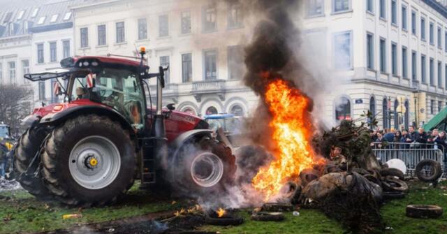 欧州の農民がEU本部への突入を図っている。