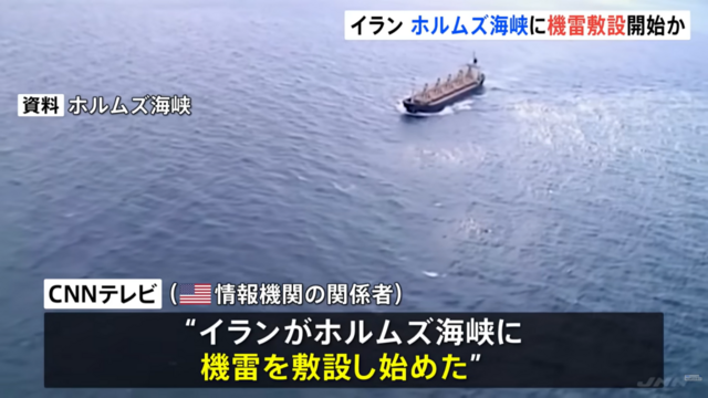 報道によると、イランがホルムズ海峡に機雷敷設開始した模様。
